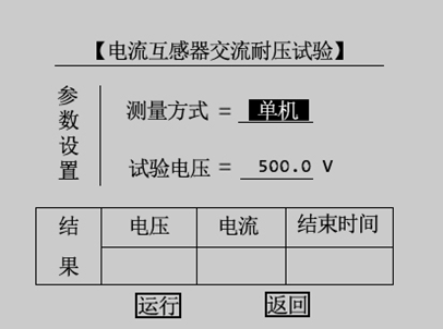 注意:為保護(hù)互感器綜合特性測試儀內(nèi)部器件和人身安全,嚴(yán)禁連續(xù)做交流耐壓試驗(yàn),兩次交流耐壓試驗(yàn)時(shí)間間隔必須大于3分鐘。