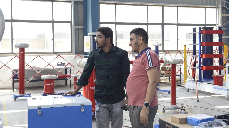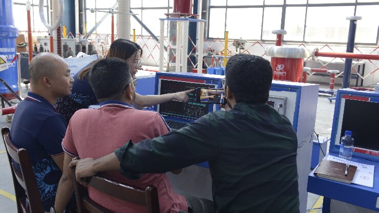 在武漢市合眾電氣技術(shù)團(tuán)隊的陪同下,孟加拉客戶深入?yún)⒂^了智能化生產(chǎn)車間與高壓實(shí)驗(yàn)室。客戶重點(diǎn)觀摩了局部放電測試系統(tǒng)的現(xiàn)場演示,對其高精度檢測能力與抗干擾性能表示認(rèn)可;在沖擊電壓發(fā)生器測試區(qū),設(shè)備穩(wěn)定的波形輸出與模塊化設(shè)計引發(fā)了客戶濃厚興趣。客戶現(xiàn)場表示:"合眾電氣的全流程質(zhì)量控制體系與國際標(biāo)準(zhǔn)接軌,完全符合孟加拉電網(wǎng)試驗(yàn)項(xiàng)目的嚴(yán)苛要求。"